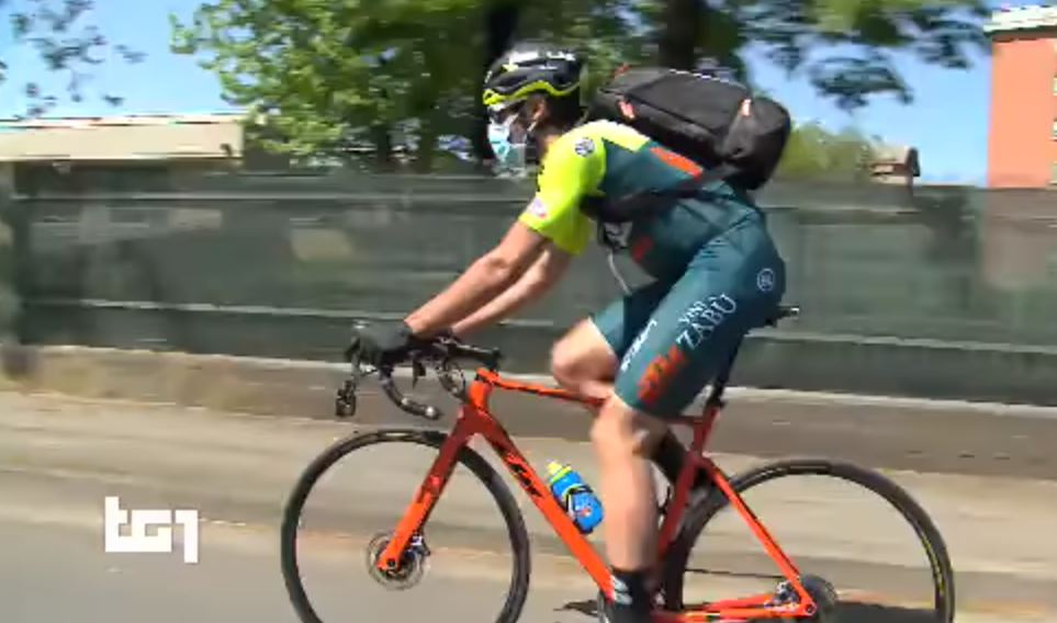 Umberto Marengo al Tg1: il pro della Vini Zabù – KTM pedala e consegna viveri ai concittadini di Collegno