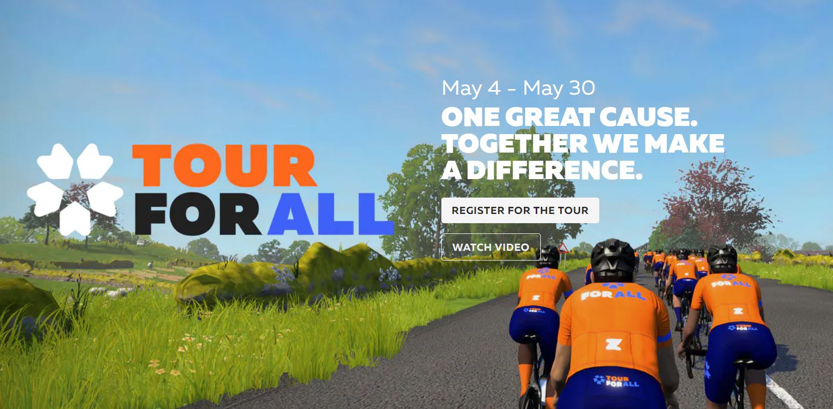 Zwift è la più famosa indoor cycling app e grazie alla partnership di Eurosport e Global Cycling Network per la trasmissione del “Tour of All” potrà donare $125,000 (circa 115mila Euro) a Medici senza Frontiere per combattere il Covid-19: che verrà raddoppiata se 250mila persone porteranno a termine almeno una tappa della corsa. Una partecipazione di massa al “Tour of All” è pertanto incoraggiata da Zwift e i suoi broadcaster a scopo benefico di raccolta fondi.