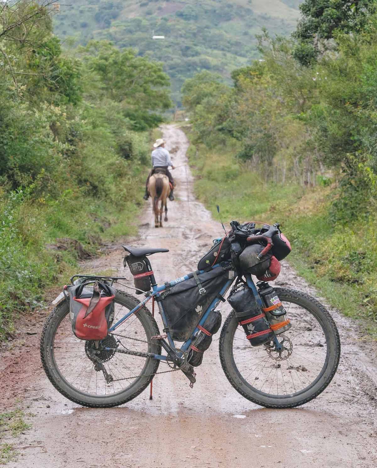 Anche le nostre bici hanno dovuto adattarsi, modellarsi di volta in volta in base alle nostre esigenze. Siamo partiti con l’idea di pedalare prevalentemente su asfalto e sterrati, avevamo una Cinelli Hobootleg, un treno che ci ha seguito, carica all’inverosimile (siamo arrivati a 80 chili nell’outback australiano) per un anno e mezzo. Ma volevamo pedalare sulle strade ghiacciate del Canada, montare copertoni chiodati e poi sterrati più impegnativi negli USA ed in Messico, e siamo quindi passati alla Cinelli Hobootleg Geo. Il peso è diminuito, da 4 borse siamo passati al Bikepacking per sentirci più agili su terreni impegnativi. Sui sentieri disconnessi avevamo ancora qualche difficoltà non potendo montare ruote da 3 pollici sul primo modello Geo, ed ecco che arriva la nuova versione. La riceviamo in Messico, da allora ci siamo concessi sentieri sempre più impegnativi sulle montagne Colombiane, percorrendo la Trans Ecuador fino ad arrivare alle Ande Peruviane, dove il nostro viaggio si è interrotto.
