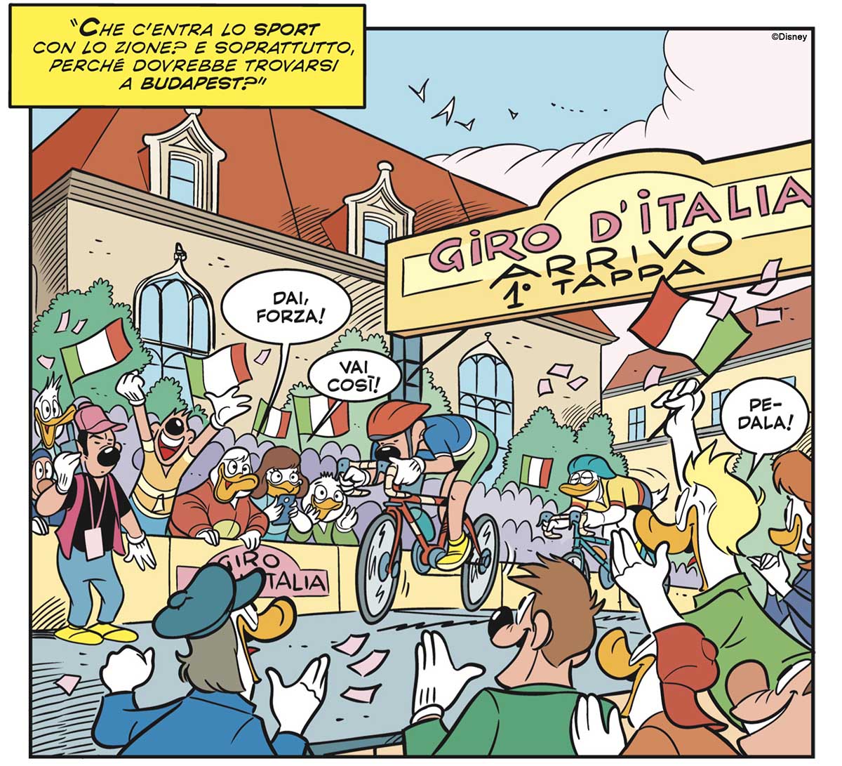 MILANO (MI) – Lo sport e la passione per le due ruote arrivano su Topolino! In questa stagione così particolare, in cui anche ogni manifestazione sportiva è stata sospesa e rimandata, per la prima volta sarà Topolino ad ospitare nelle sue pagine la gara ciclistica per eccellenza del nostro Paese, in attesa di disputare la sua 103esima edizione, quando sarà possibile. Il Giro d’Italia, dunque, si correrà su Topolino grazie a Zio Paperone e il Giro da capogiro, un’affascinante storia in 3 episodi che prende vita con un prologo speciale nel numero 3363, in edicola da oggi, mercoledì 6 maggio.
