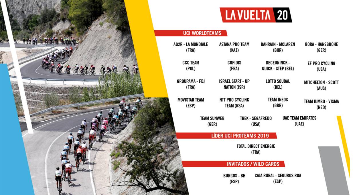 MADRID (SPAGNA) – Dopo l’annuncio ufficiale del nuovo calendario dell’UCI WorldTour 2020 ed aver discusso con gli enti competenti a livello mondiale dei criteri di partecipazione e delle regole, gli organizzatori di La Vuelta hanno scelto le squadre che prenderanno parte alla 75esima edizione della corsa a tappe più importante di Spagna. La Vuelta 20 comincerà giovedì 20 ottobre da Irúne si concluderà domenica 8 novembre a Madrid.