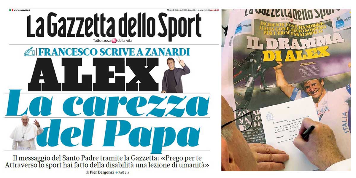 Papa Francesco scrive una lettera ad Alex Zanardi: “Esempio di ripartenza. Prego per te”