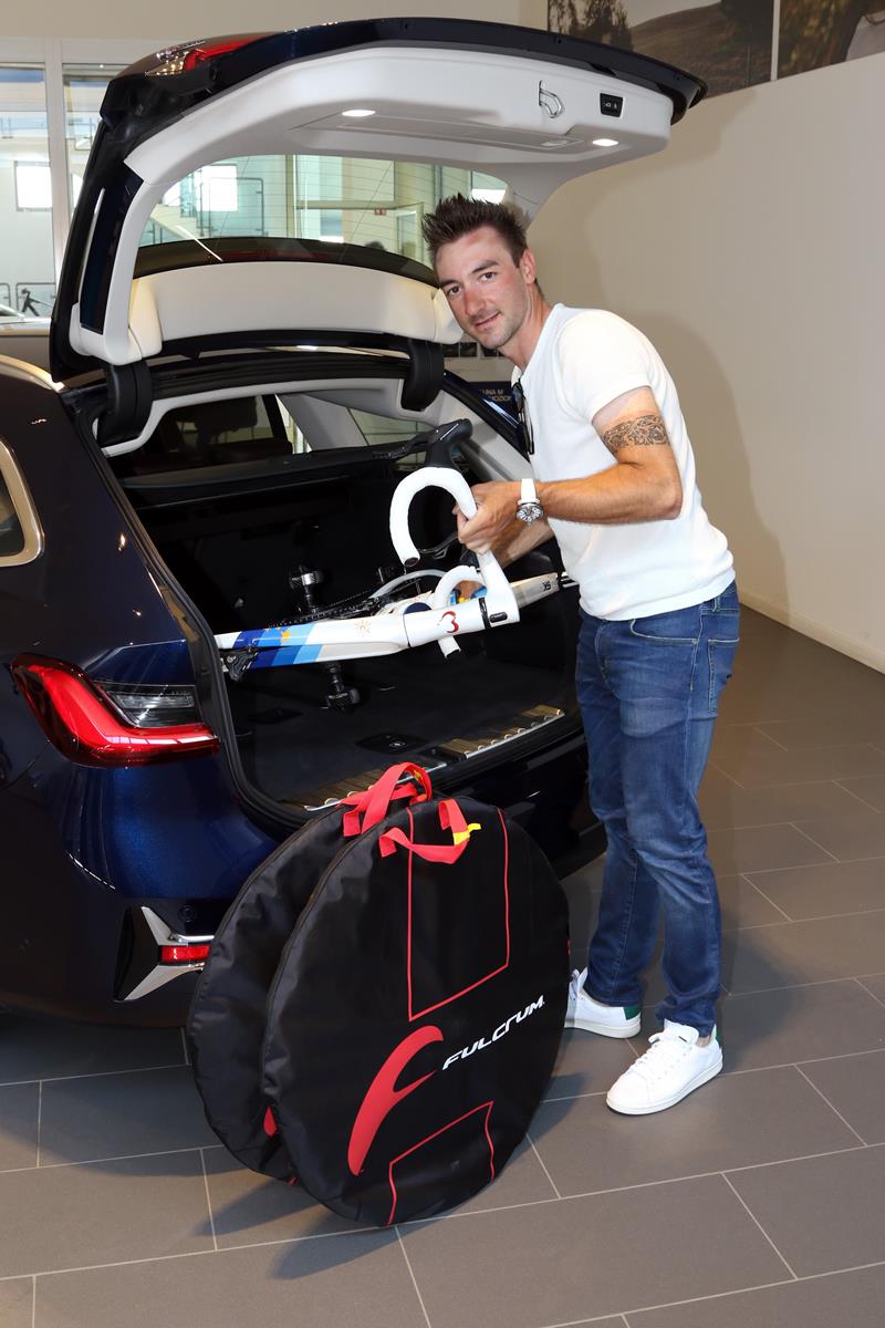 Ieri pomeriggio, prima della partenza per la Valtellina e prima di dedicarsi completamente alla bicicletta, Elia Viviani si è dedicato per qualche ora ai motori. In particolare, ha ricevuto una nuova auto che lo ha accompagnato nel viaggio verso Livigno. “Ho iniziato da quest’anno una collaborazione con Fimauto – Autogemelli, concessionaria BMW che opera tra le province di Vicenza e Verona – ha raccontato il campione olimpico dell’Omnium a Rio2016 –. Ho conosciuto lo scorso dicembre Marco Moressa, che è il general manager della società, e dopo una chiacchiera è nata questa bella collaborazione. La concessionaria mi fornisce le auto per gli appuntamenti importanti o comunque a supporto della mia attività ciclistica. Questa è già la seconda consegna che facciamo. Prima mi era stata data una BMW 840i, una macchina un po’ più sportiva, mentre questa volta mi è stata fornita una BMW Serie 3 Station Wagon, l’ideale per raggiungere il mio ritiro. Dopo l’evento in concessionaria a Verona, ho caricato bici e valigia sulla macchina e sono partito per Livigno”.