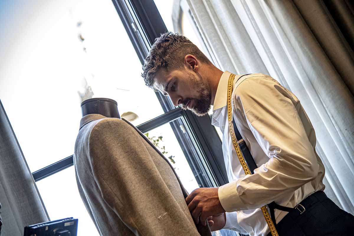 Luogo: Atelier Ermenegildo Zegna, con la collaborazione di Manifatture Valcismon (Sportful) e il cameo di Giuseppe Sala, Sindaco di Milano. Peter sta modellando un capo di moda, disegnando con sicurezza la forma di una manica di una giacca sportiva. Quindi, taglia i tessuti perfetti, cucendo con abilità e facendo le prove sartoriali su un cliente d’eccezione.
