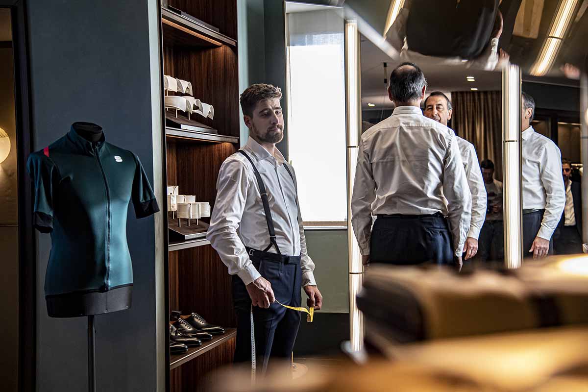 Giro d’Italia: il sarto Peter Sagan veste il Sindaco di Milano Giuseppe Sala nell’atelier di Ermenegildo Zegna