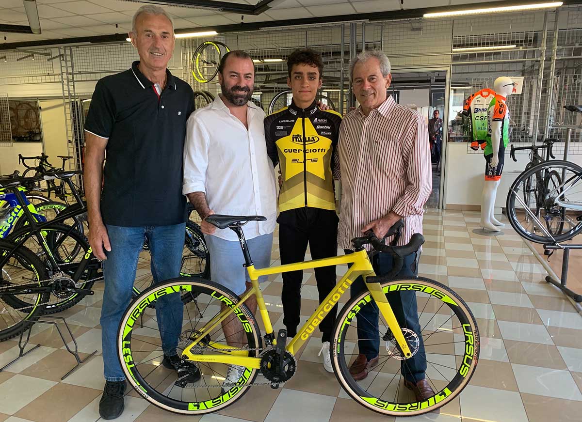 Paolo Guerciotti e il figlio Alessandro, che della squadra ciclocross continua a ricoprire il ruolo di team manager, hanno premiato Dorigoni per la conquista del Campionato italiano di ciclocross 2020 a Schio. Da notare che il corridore dell’Alto Adige poteva cimentarsi nella gara valida per il tricolore under 23 ( è nato nel ’98) tuttavia ha preferito puntare al titolo degli elite, che è riuscito a conquistare con onore. Ha altresì ricevuto la targa per la vittoria nel Campionato italiano la toscana Baroni, prima a Schio fra le under 23. Paolo Guerciotti sulla terrazza ha anche premiato con targa il pluri-Campione del Mondo di ciclocross Vito Di Tano, legato da una vita alla squadra. Di Tano ha corso nel team di Guerciotti dal 1978 al gennaio ’90. Dall’inverno successivo è diventato direttore sportivo della Selle Italia-Guerciotti (allora denominata con altri brand).