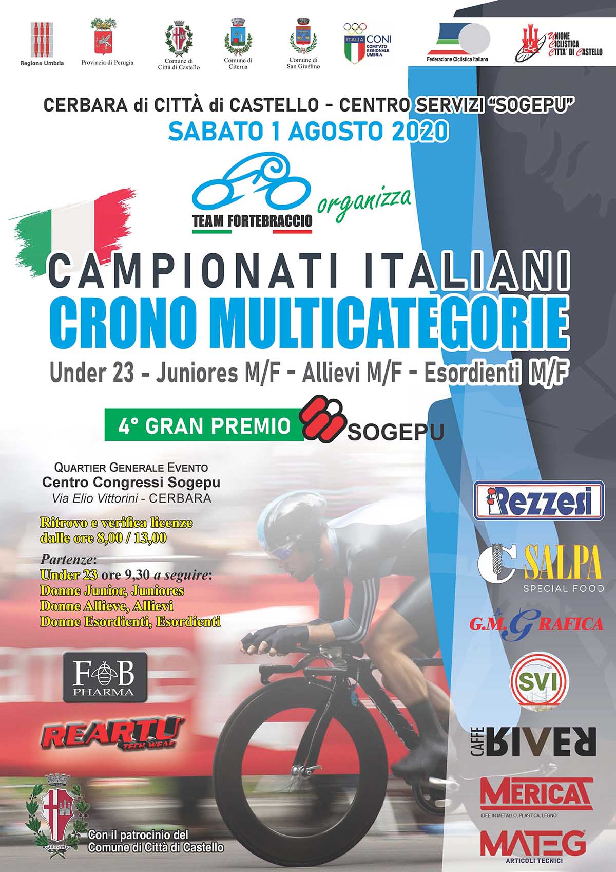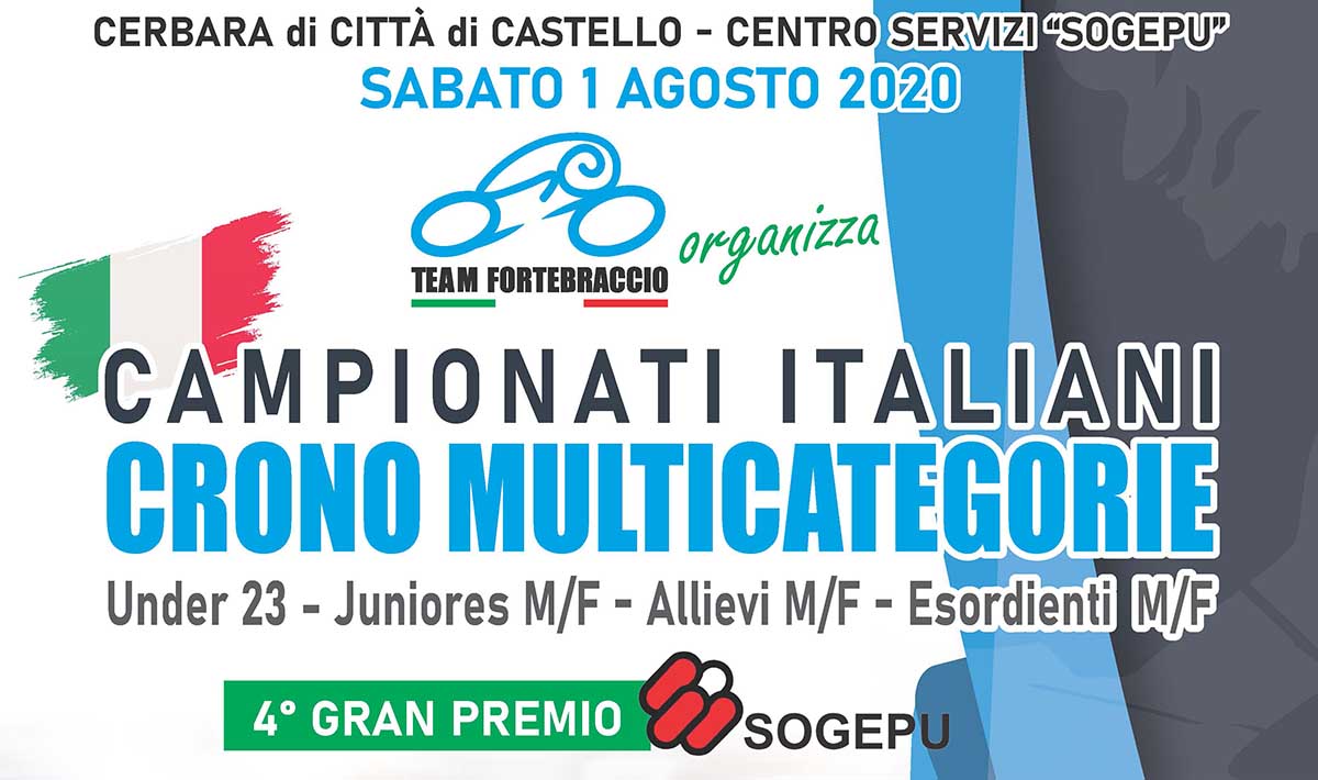 CERBARA DI CITTÀ DI CASTELLO (PG) –Lo scorso 9 luglio il Consiglio Federale ha deliberato l’assegnazione del Campionato italiano Cronometro Individuale categorie Under 23, Allievi e Donne Allieve Esordienti, maschi e femmine, in programma l’1 agosto 2020, alla Società ASD Fortebraccio da Montone che organizzerà l’evento a Cerbara di Città di Castello (PG) dove saranno previste gare a cronometro anche per le categorie Esordienti e Juniores maschi e femmine.