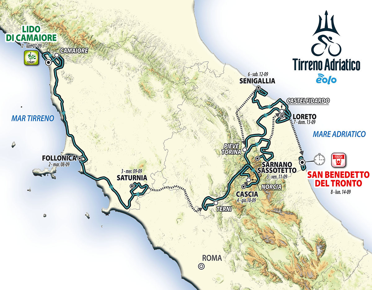 Ecco il percorso della Tirreno-Adriatico 2020: otto tappe per tutti i gusti