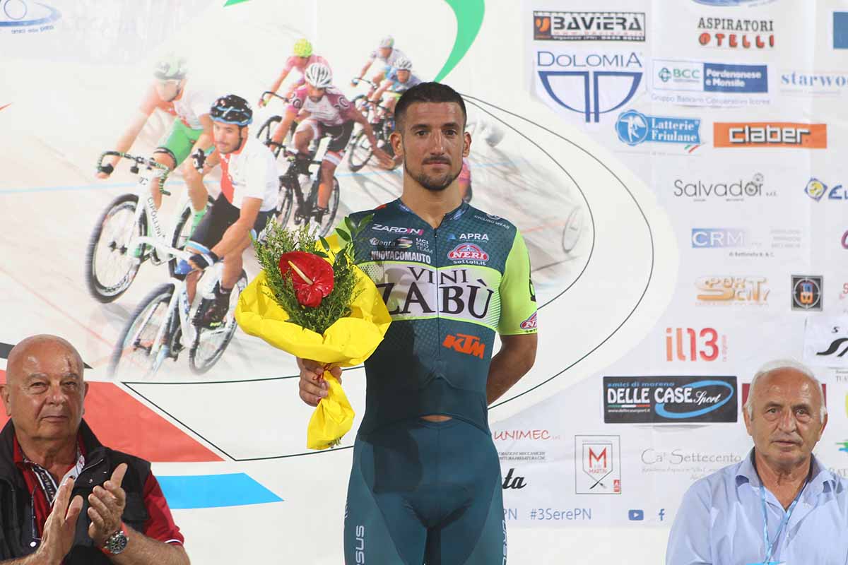 PORDENONE (PN) – Durante la prima delle 4 giornate di gare della 3 Sere internazionale città di Pordenone al velodromo “O. Bottecchia” si è disputato l’Omnium UCI riservato alla categoria degli uomini elite che ha visto trionfare il padovano Liam Bertazzo portacolori del team professionistico Vini Zabu-KTM di Luca Scinto.