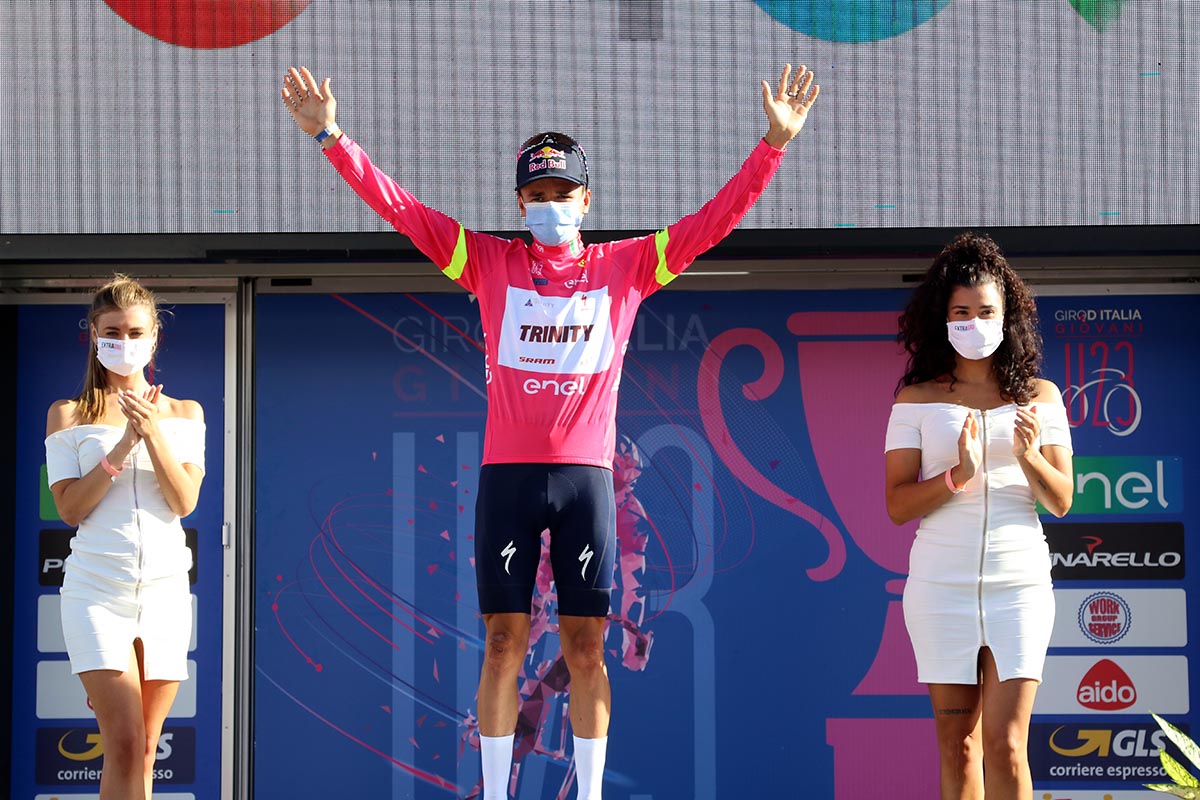 Thomas Pidcock maglia rosa dopo la quarta tappa del Giro d’Italia Under 23 (foto Photobicicailotto)