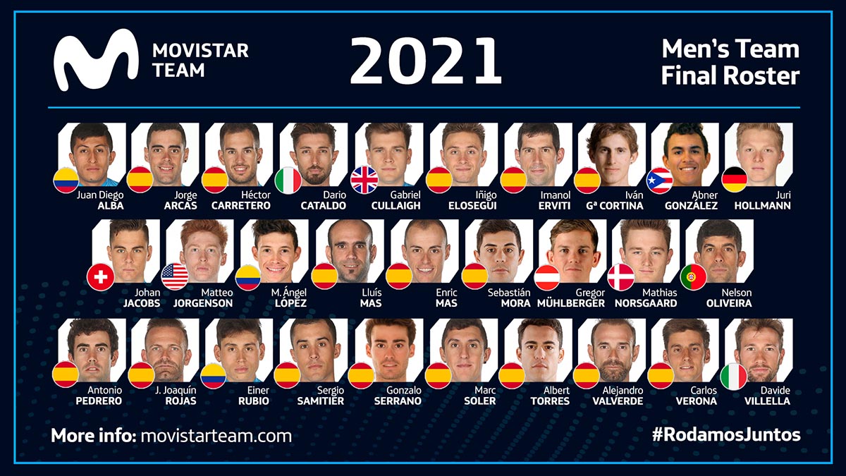 Movistar Team conferma un roster di 29 corridori per la squadra maschile 2021