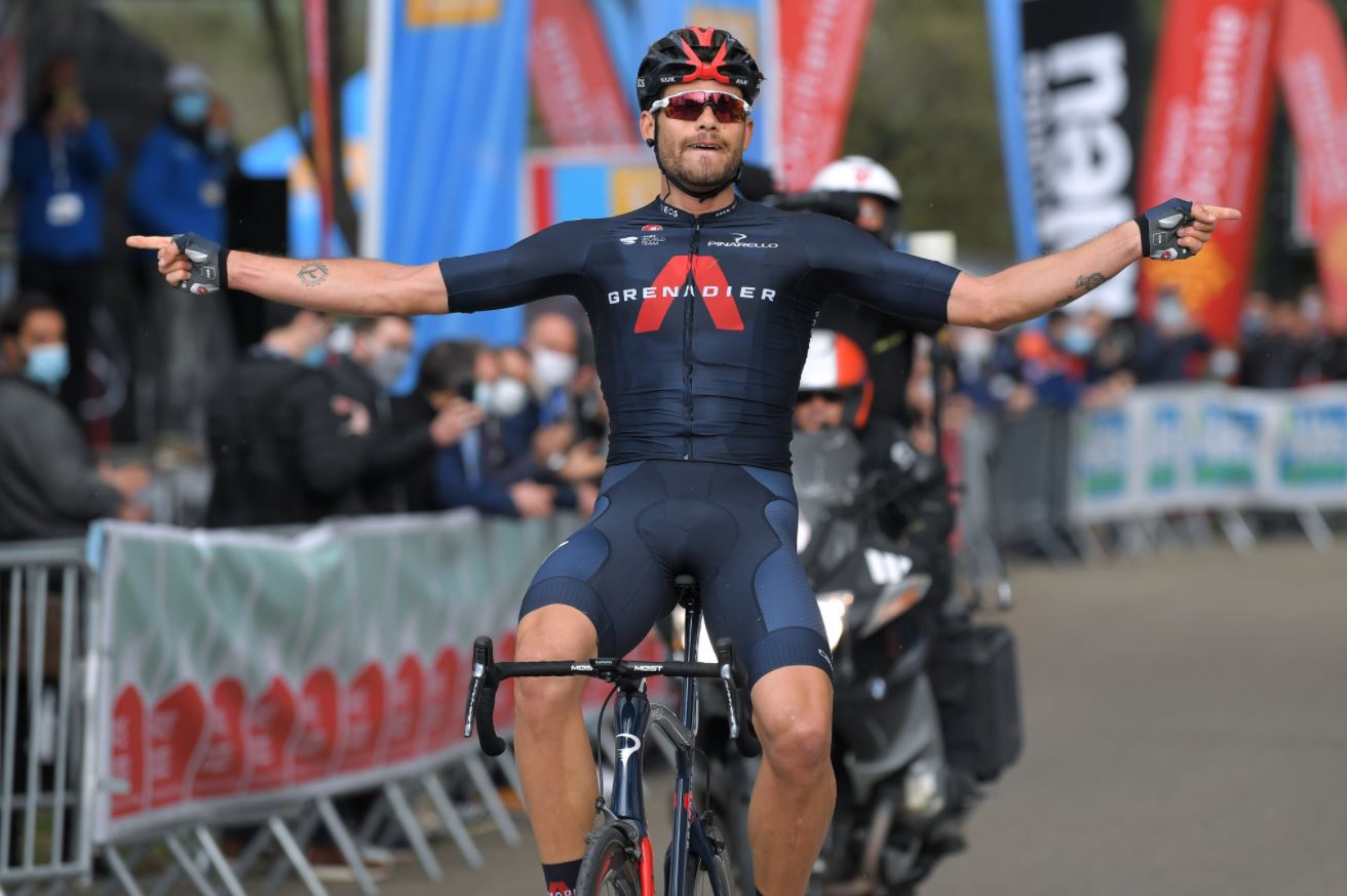 SAINT-SIFFRET (FRANCIA) – Filippo Ganna (Ineos Grenadiers) ha vinto la quarta tappa all’Étoile de Bèsseges. Il campione del mondo a cronometro si è esibito in uno spettacolare attacco solitario nel finale della frazione di 152 km da Rousson a Saint-Siffret, dopo aver staccato i compagni di fuga.