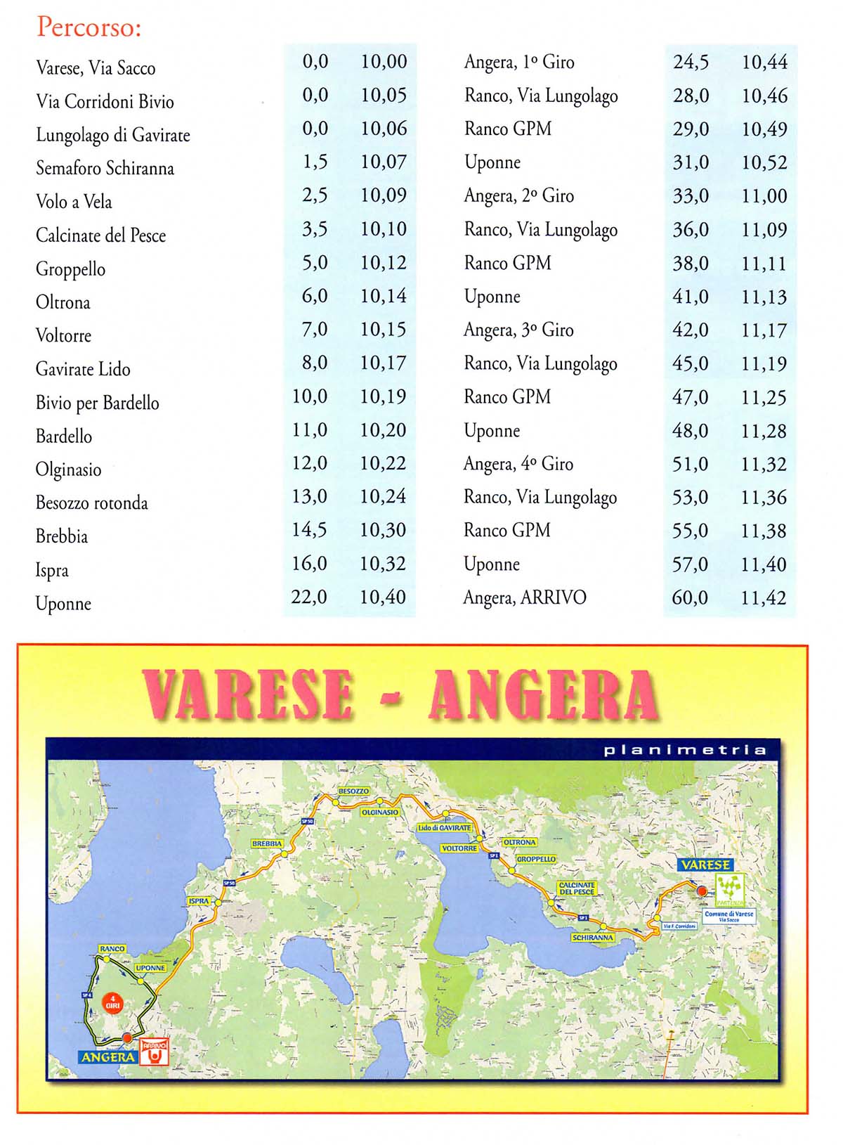 Il tracciato è quello classico, dopo la partenza alle ore 10 da Varese ci sarà un tratto in linea di 24 chilometri prima di iniziare il circuito finale passando da Angera, Ranco (sede del Gran Premio della Montagna), Uponne e Angera, da ripetere per quattro volte. Rispetto alle edizioni passate quest’anno l’arrivo, a causa della pandemia, sarà nella zona industriale di Angera, in via Verdi, dopo 61 chilometri di corsa.