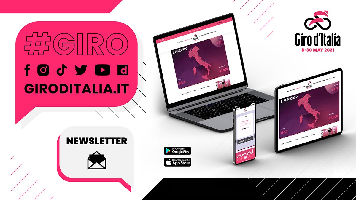 Per la prima volta nella storia, il segnale televisivo internazionale delle 21 tappe del Giro d’Italia verrà prodotto dall’host broadcaster RAI in diretta integrale, dalla prima all’ultima pedalata, affinché gli appassionati possano seguire “La corsa più dura del mondo nel Paese più bello del mondo” senza perderne nemmeno un minuto. Le relative immagini verranno distribuite in tutto il pianeta, grazie alla diffusione da parte di 20 diversi network televisivi. Live scritto della corsa ogni giorno sul sito www.giroditalia.it in 4 lingue, sui social del Giro e da quest’anno contenuti anche su TikTok.