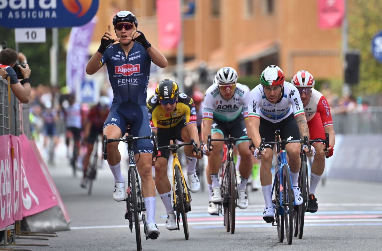 Giro d’Italia: la prima volata a Novara è del belga Tim Merlier. Battuti Nizzolo e Viviani
