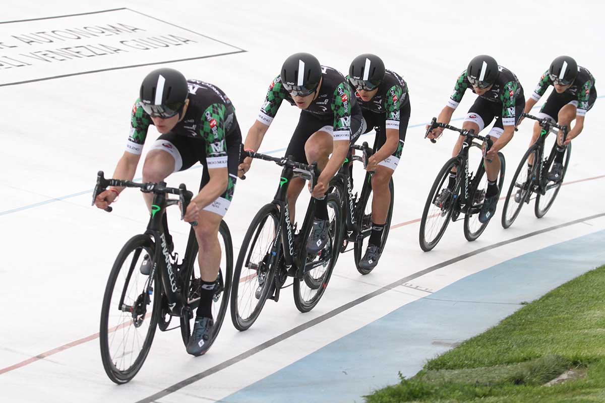 La maglia di leader finisce sulle spalle di Alessandro Pinarello, ma è tutto il quintetto trevigiano ad aver fornito una prova di solidità sulla pista del velodromo Bottecchia di Pordenone, dove si è svolta la cronometro a squadre di 4 km che ha aperto la corsa che terminerà mercoledì.