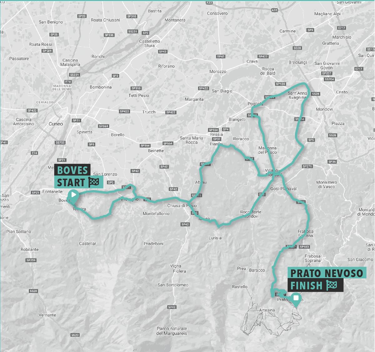 Con la seconda tappa del Giro d’Italia Donne 2021 iniziano le scalate impegnative: l’itinerario si snoda per più di 100 km nel Piemonte Orientale partendo da Boves, a quota 600 m, e percorrendo poi il territorio di Peveragno, famoso per la sua varietà autoctona di fragole, Chiusa di Pesio, attraversato dal torrente omonimo, e Roccaforte Mondovì, dove è possibile ammirare un affresco risalente al periodo romanico-bizantino presso la Pieve di San Maurizio. I sopracitati territori, insieme a Villanova Mondovì e Frabosa Sottana, fanno parte dei comuni appartenenti alla minoranza linguistica occitana. Meta finale del percorso è la famosa stazione sciistica Prato Nevoso, a quota 1.470 m.