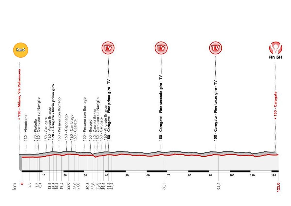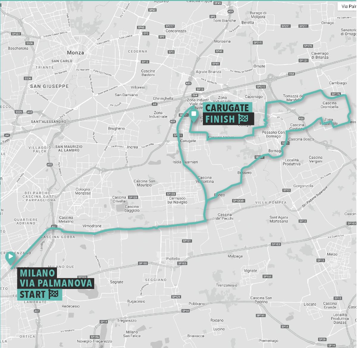 Il Giro d’Italia Donne 2021 arriva in Lombardia per una tappa pianeggiante lunga 122 km che parte a Milano da Piazza Affari per poi toccare alcune delle Piazze più celebri della città come Duomo, Della Scala, San Babila e Loreto. Dopo aver raggiunto via Palmanova nella periferia nord-est di Milano, si arriva nella Martesana e nella bassa Brianza, territori pianeggianti storicamente verdi e ricchi di corsi d’acqua. Dopo essere passati per Cascina Gobba, Vimodrone e Pioltello, il tragitto oltrepassa infatti il Naviglio della Martesana, il canale navigabile che collega l’Adda a Milano e che fu oggetto degli studi di Leonardo da Vinci durante il suo soggiorno meneghino. A Cernusco sul Naviglio, le atlete entrano in un circuito di 26 km che percorrono per 4 volte e che tocca i comuni di Bussero, Gessate, Cambiago, Caponago, Agrate Brianza e infine Carugate, traguardo della tappa.