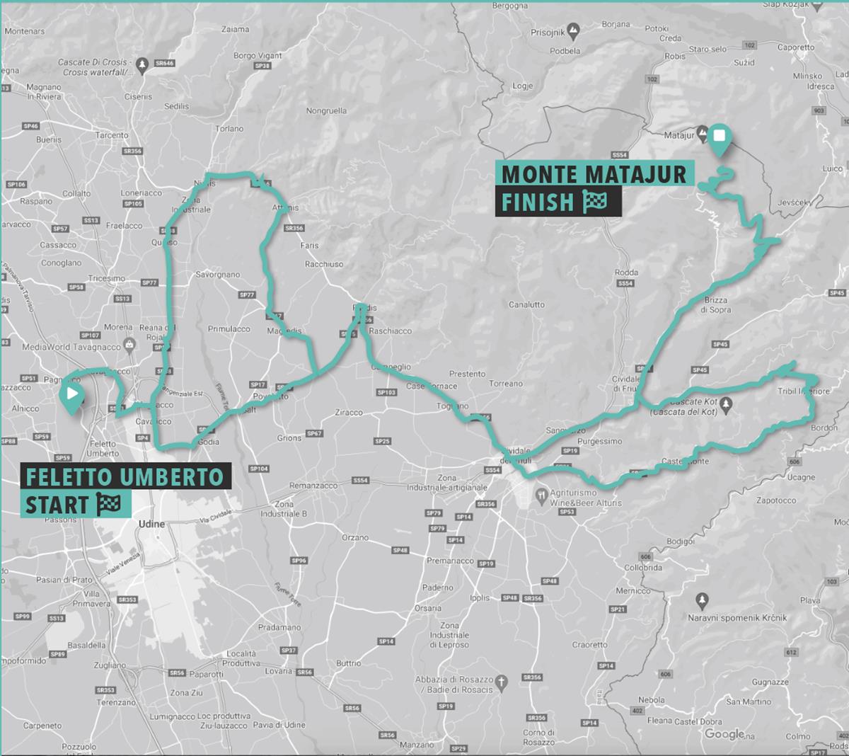 Il nono appuntamento del Giro d’Italia Donne 2021 è quello con il maggior dislivello tra partenza e arrivo, 1.124 m, in un percorso lungo 120 km. Si parte da Feletto Umberto a quota 143 m e si attraversa la pianura orientale friulana, spostandosi prima verso Tavagnacco e poi nella periferia nord di Udine, dove inizia il primo anello della tappa che raggiunge le colline di Povoletto, Attimis, prima salita impegnativa della gara, e Nimis, zona rinomata per la sua produzione vitivinicola. All’altezza di Cividale del Friuli, città monumento della civiltà longobarda in Italia e Patrimonio UNESCO, inizia il secondo anello della gara che porta, con una forte salita fatta di numerosi tornati, verso Stregna e Prepotto. Infine la tappa si dirige verso il confine con la Slovenia, teatro delle battaglie della Prima Guerra Mondiale tra italiani e austriaci, iniziando a Savogna la salita che porta verso la meta finale, il Monte Matajur, a quota 1.267 m.