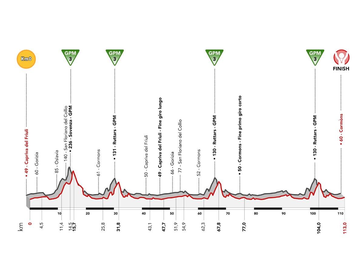 Il Giro d’Italia Donne 2021 si conclude con una tappa nella pianura friulana orientale, 113 km in un territorio di confine da sempre caratterizzato da un’anima mitteleuropea, confluenza culturale tra la civiltà romanza, slava e germanica. La gara è composta da un anello che viene percorso per intero una volta e in versione ridotta per le seguenti due. Il tragitto inizia a Capriva del Friuli per proseguire verso Gorizia, città divisa tra Italia e Slovenia, la zona del Collio, celebre per la propria produzione vinicola e di ciliegie, e infine all’arrivo a Cormòns, ai piedi del monte Quarin, verrà decretata la vincitrice del Giro d’Italia Donne 2021.