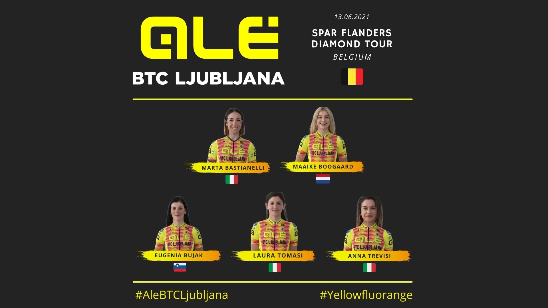 VERONA (VR) – Domani, domenica 13 giugno, il team Alé BTC Ljubljana tornerà in gara in Belgio per lo SPAR Flanders Diamond Tour, gara di categoria 1.1 di 136,4 km con partenza e arrivo a Nijlen.