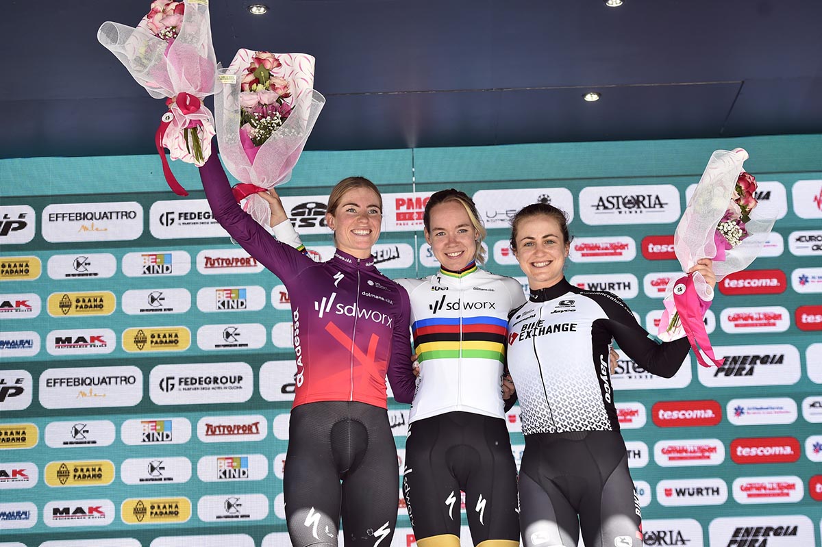 Il podio della quarta tappa del Giro d’Italia Donne 2021 (foto BettiniPhoto)
