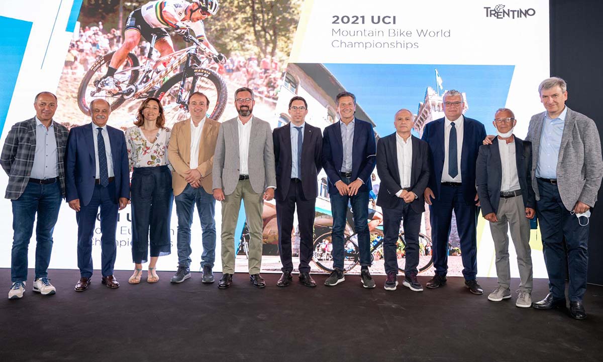 Hanno preso parte alla conferenza stampa, fra gli altri, il Vice-Presidente dell’UCI Renato Di Rocco, il Presidente UEC (Union Européenne de Cyclisme) Enrico Della Casa, il Presidente della Federazione Ciclistica Italiana Cordiano Dagnoni, il Presidente del CONI Trentino Paola Mora, il Presidente della Federazione Ciclistica Italiana Trentino Giovannina Collanega, il Sindaco di Trento Franco Ianeselli, il Vicesindaco di Commezzadura Marco Podetti, il Commissario Tecnico della Nazionale Italiana di Mountain Bike Mirko Celestino, il Presidente del CPA (Cyclistes Professionnels Associés) Gianni Bugno, il Direttore Organizzativo degli Europei Trentino 2021 Maurizio Evangelista, le atlete Eleonora Farina e Chiara Teocchi e grandi campioni del ciclismo trentino Francesco Moser e Gilberto Simoni. In collegamento sono intervenuti il Presidente del CONI Giovanni Malagò e il Commissario Tecnico della Nazionale Italiana di Ciclismo Davide Cassani.
