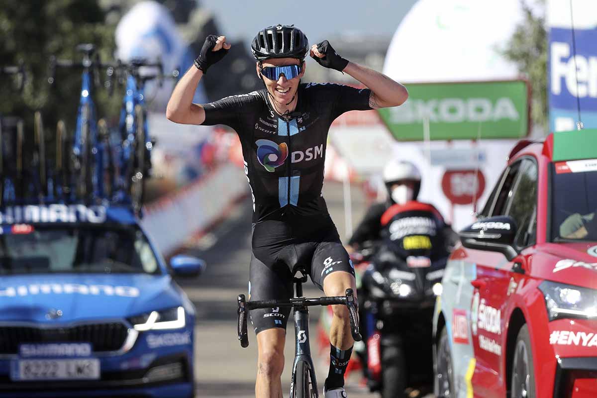PICO VILLUERCAS (SPAGNA) – Romain Bardet (Team DSM) ha finalmente ottenuto la vittoria di tappa che aveva tanto inseguito in questa Vuelta a España, oggi ha vinto in cima ai 14,7 km della salita di Pico Villuercas, nella regione centrale dell’Extremadura.