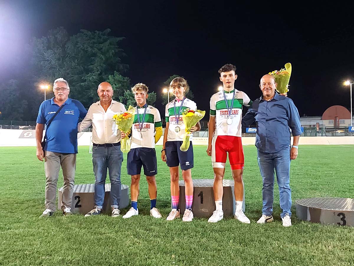 Momento piacevole ed emozionante, la premiazione con giro d’onore di pista per i ragazzi vincitori della maglia tricolore ai Campionati Italiani di categoria tenutisi a San Giovanni al Natisone solo poche settimane fa.