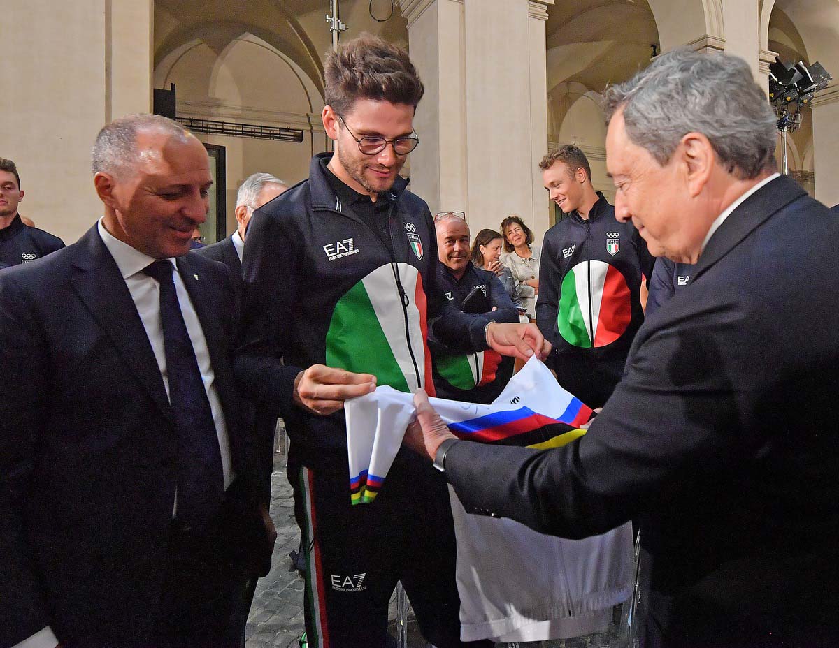 I campioni olimpici e paralimpici sono stati poi ricevuti a Palazzo Chigi dal Presidente del Consiglio Mario Draghi: “La gioia e l’orgoglio per i vostri successi è enorme. Avete superato le aspettative di tutti gli italiani. Ci avete fatto vivere momenti che ricorderemo molto a lungo. C’è solo un problema: ci state abituando male”. Poi un messaggio d’orgoglio: “Il resto del mondo guarda a questa estate italiana di successi sportivi con ammirazione e, perché no, un pizzico d’invidia. Auguro a tutti voi, e a tutti a noi, di continuare così. Spesso quando parliamo di futuro è facile perdersi in concetti astratti. Qui vedo la generazione che vuole cambiare l’Italia. E che, ne sono certo, ci riuscirà. Siete simboli di integrazione e di superamento delle barriere. Tocca a noi come Governo mettere in grado voi e i vostri coetanei di sprigionare le vostre energie. Perché, come abbiamo visto, possono portare a grandi soddisfazioni per il Paese”.