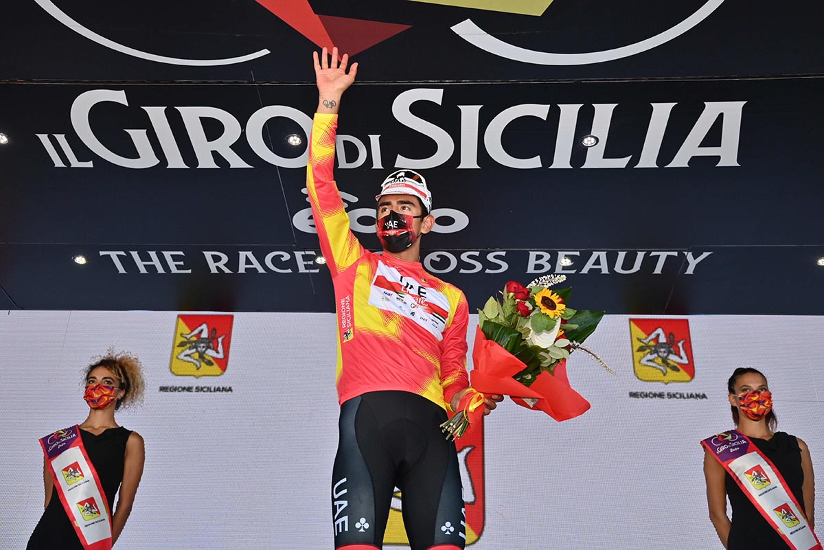 Juan Sebastian Molano leader dopo la seconda tappa del Giro di Sicilia 2021 (foto LaPresse)