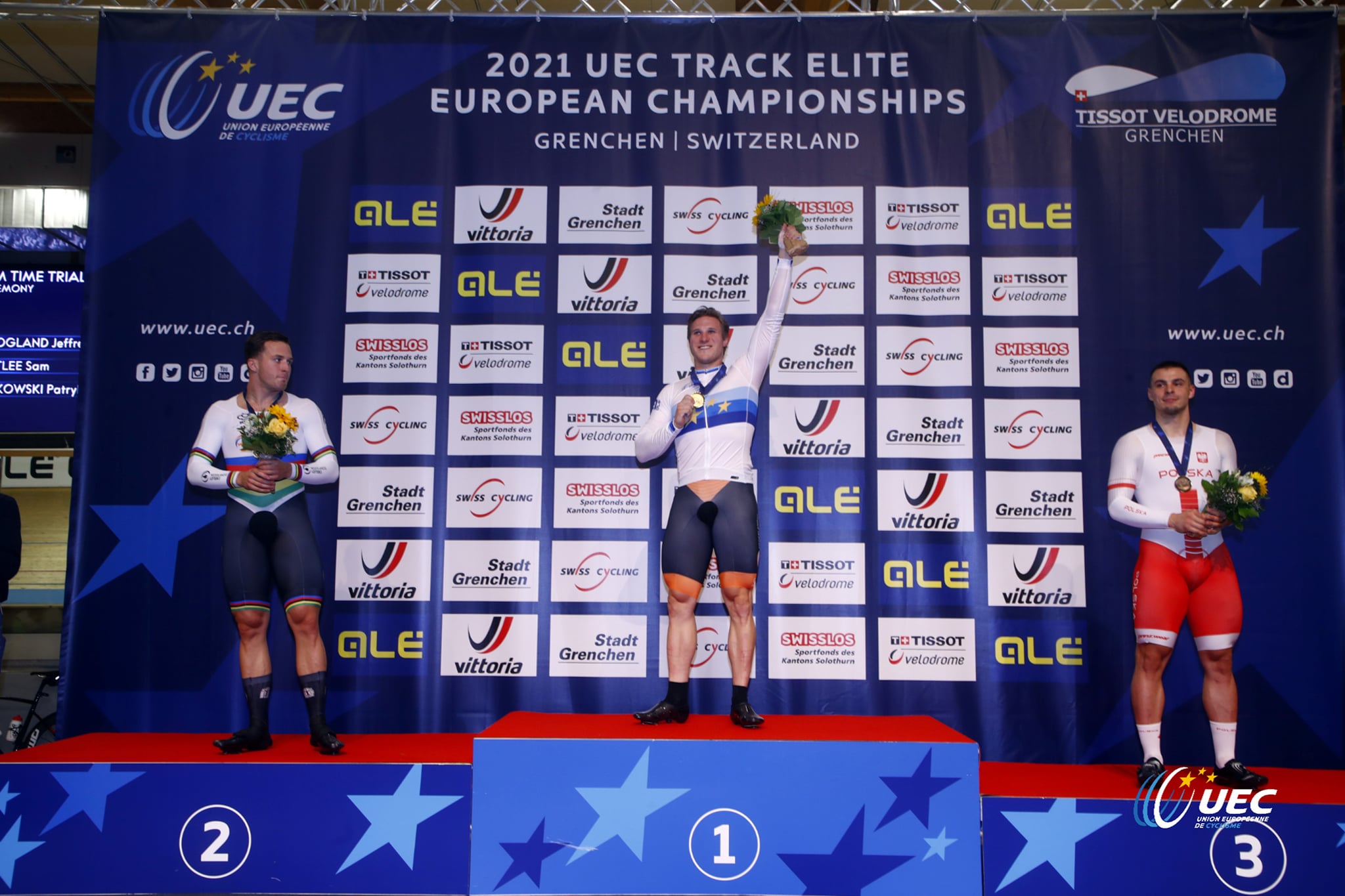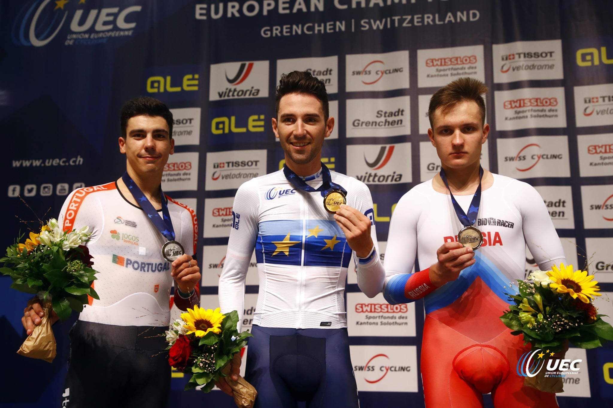 Nel pomeriggio ha gareggiato anche Matteo Donegà che era impegnato nella corsa a punti dove è giunto 12°. Medaglia d’oro per il francese Benjamin Thomas, argento al portoghese Iuri Leitao e bronzo al russo Vlas Shichkin.