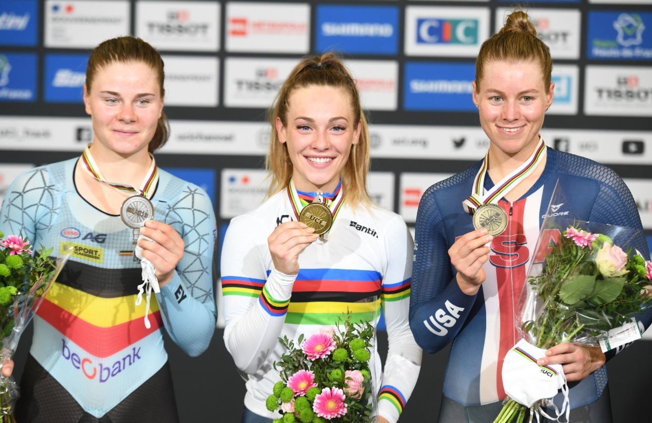 Letizia mostra la gamba dei giorni migliori. Pedala in scioltezza nella parte alta della pista, evitando di restare imbottigliata nel gruppo. Si contende il titolo con la belga Kopecky, che regola con una volata di testa. In precedenza entrambe avevano mortificato le speranze di successo dell’altra favorita, la statunitense Valente. “Sono tornata” riesce a ripetere incredula, come a convincersi di quanto ha fatto. Per la campionessa trentina, 22 anni, si tratta del primo titolo mondiale élite su pista, dopo l’argento (Omnium) e il bronzo (nella Madison in coppia con Elisa Balsamo) dello scorso anno.