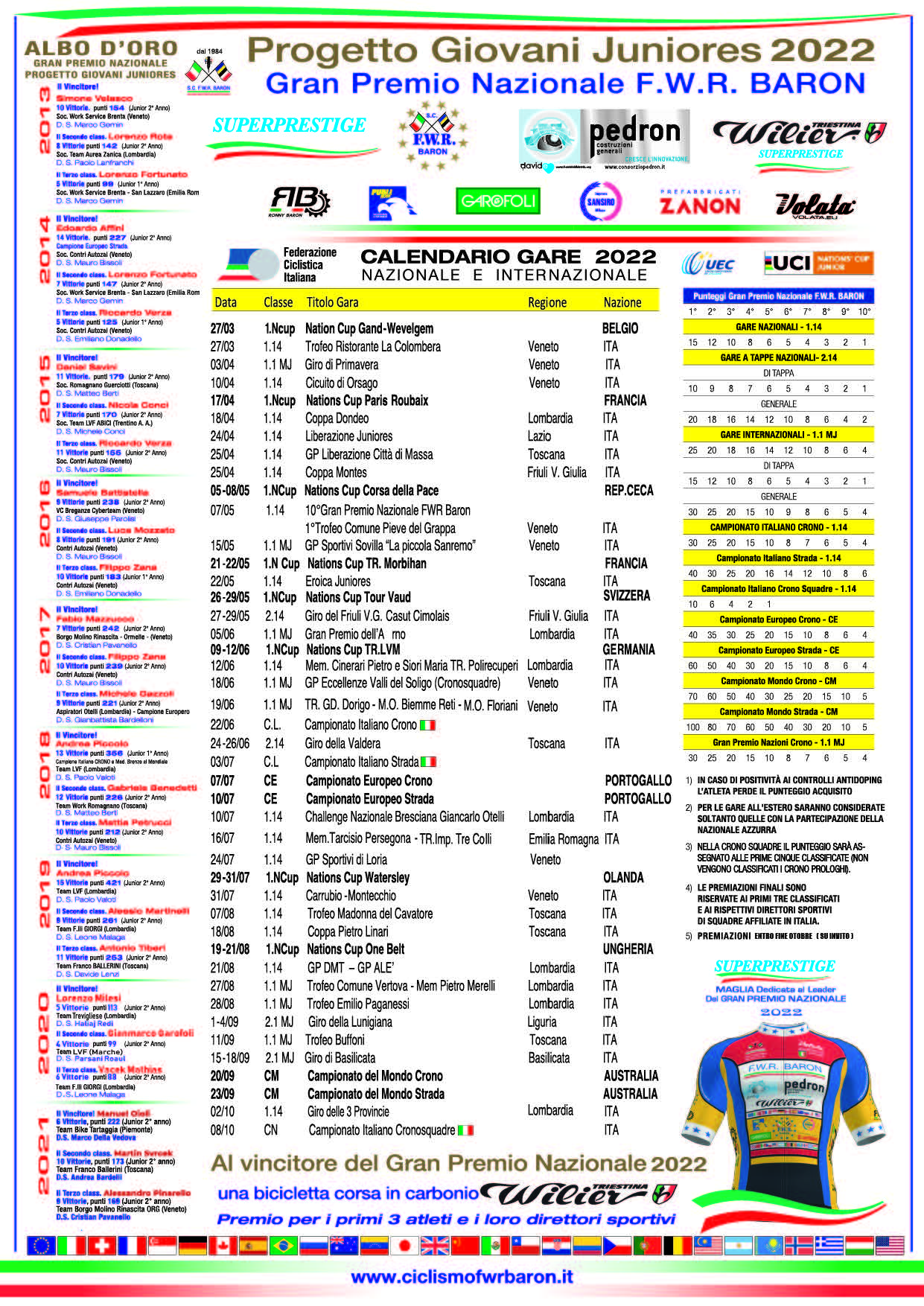 Gp Nazionale F.W.R. Baron-Progetto Giovani Juniores: ecco il calendario 2022