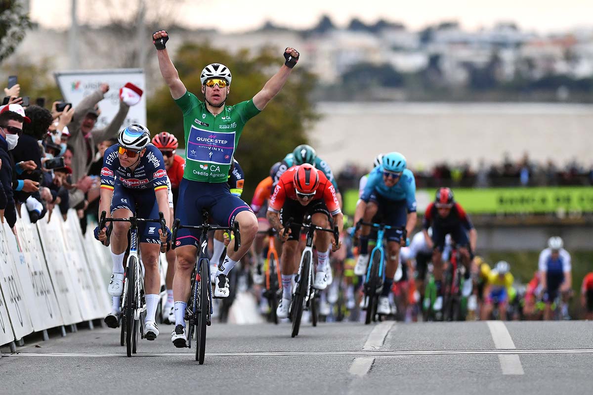 FARO (PORTOGALLO) – L’olandese Fabio Jakobsen (Quick-Step Alpha Vinyl Team) conquista la quarta vittoria personale della stagione (la secondo qui in Portogallo). Oggi ha vinto nettamente lo sprint che ha deciso la terza tappa della Volta ao Algarve, la Almodovar – Faro di 211, 4 km.