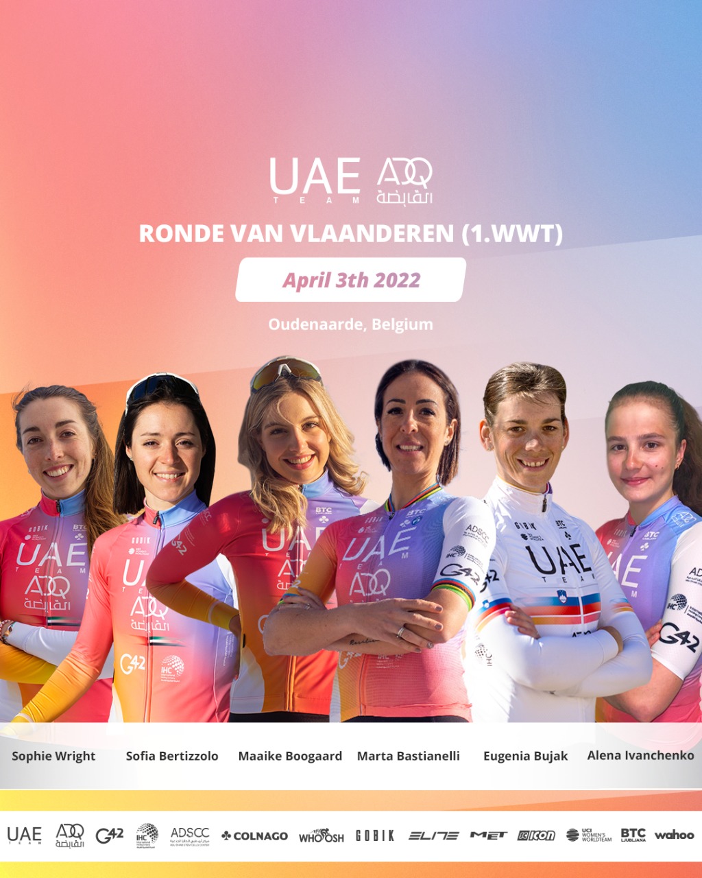 OUDENAARDE (BELGIO) – Dopo il quinto posto di Marta Bastianelli alla Dwars door Vlaanderen – A travers la Flandre mercoledì scorso, UAE Team ADQ è pronta ad affrontare una delle Classiche Monumento del ciclismo femminile. Domenica 3 aprile a Oudenaarde, in Belgio, è in programma il Giro delle Fiandre femminile, sulla distanza di 158,5 km.