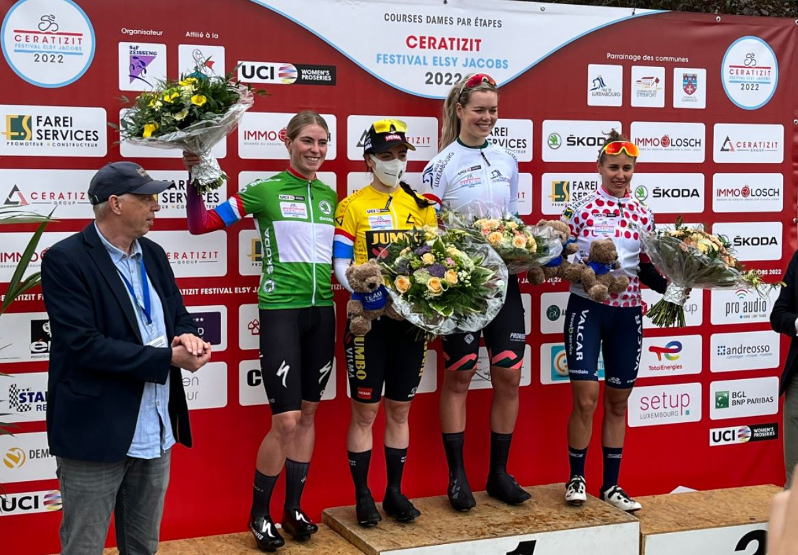 CESSANGE (LUSSEMBURGO) – È cominciato oggi con un breve prologo di 2,2 km il Ceratizit Festival Elsy Jacobs. A Cessange, in Lussemburgo, ha esultato la britannica Anna Henderson del Team Jumbo Visma che ha fatto segnare il tempo di 3’09” anticipando di 2″ Demi Vollering e di 4″ la bergamasca Silvia Persico della Valcar Travel & Service che ha completato il podio con un’ottima prestazione. Tra le prime dieci anche Chiara Consonni, settima, e Sofia Bertizzolo, ottava. La Henderson è anche la prima leader della corsa.