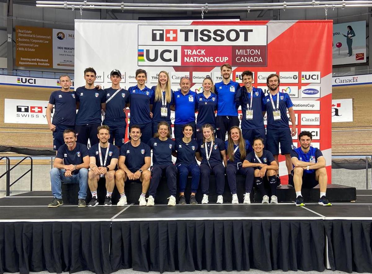 MILTON (CANADA) – Primo posto nel medagliere, con 10 metalli, e vittoria finale nella Madison con la coppia Elisa Balsamo – Chiara Consonni. È questo l’ottimo bilancio finale della spedizione canadese degli azzurri alla Track Nations Cup che si è chiusa nella notte al Mattamy National Cycling Centre di Milton.