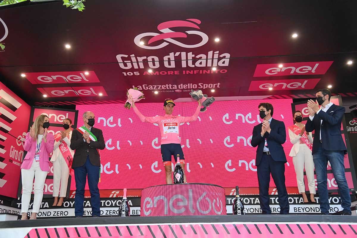 Juan Pedro Lopez maglia rosa del Giro d’Italia 2022 (foto La Presse)