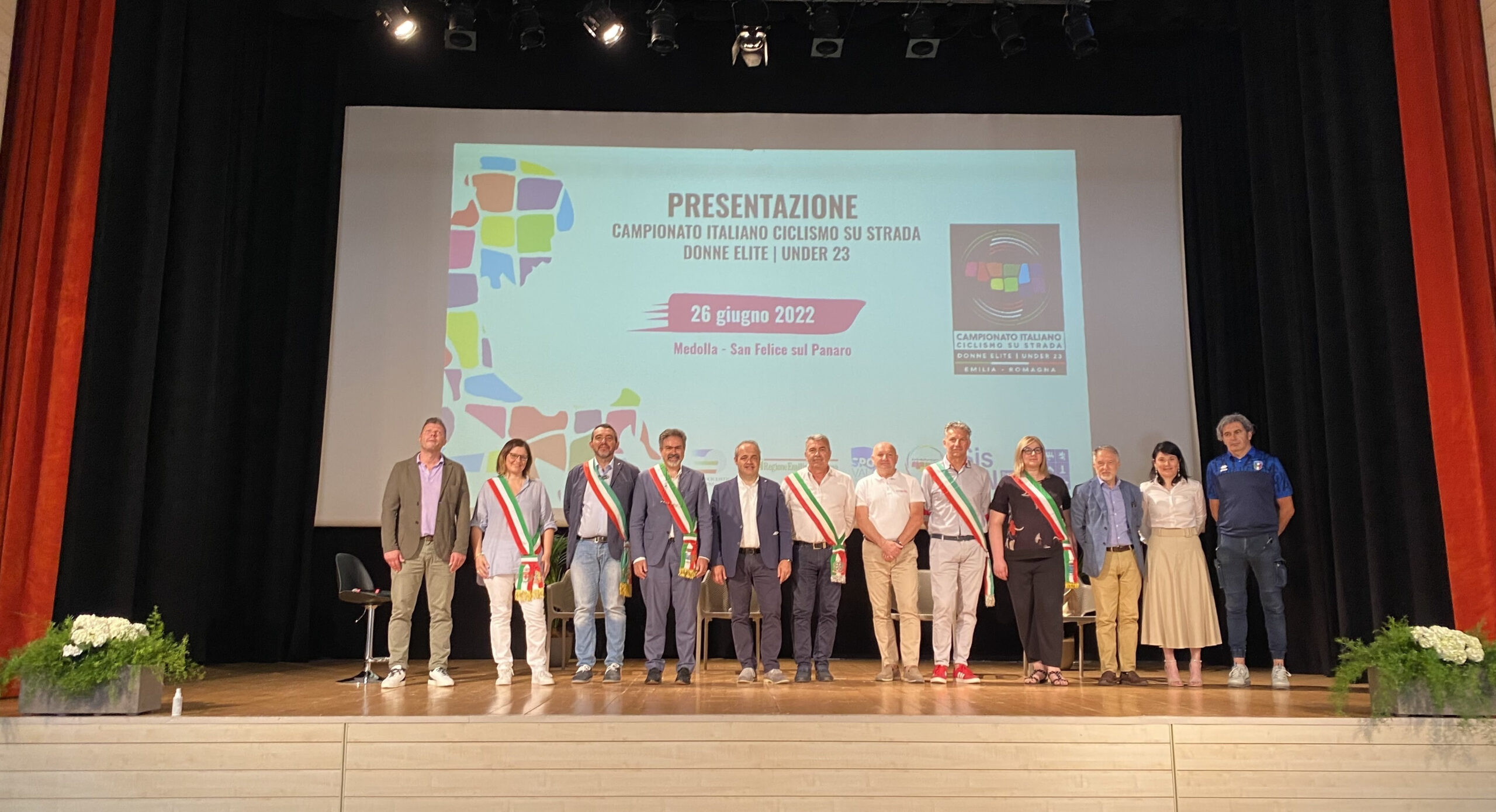MEDOLLA (MO) – È stato presentato ufficialmente martedì 7 giugno, al teatro comunale Webben Facchini di Medolla (Mo), il percorso del Campionato italiano di ciclismo su strada 2022 per Donne Elite e Under 23, che si svolgerà domenica 26 giugno con partenza a Medolla (Mo) e arrivo a San Felice sul Panaro (Mo). Per dettagli sulla corsa: www.extragiro.it/campionato-