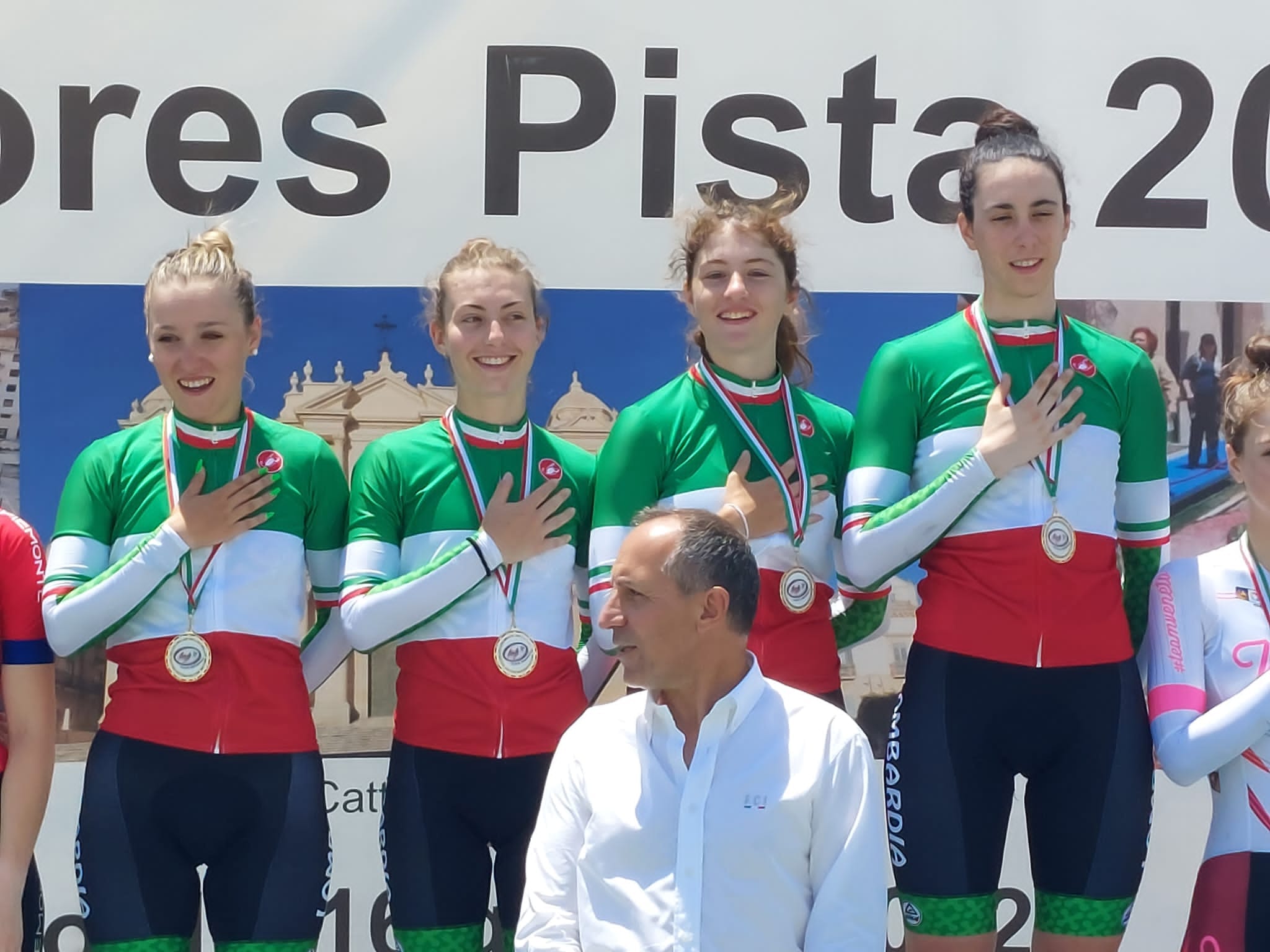 Il quartetto femminile della Lombardia, composto da Camilla Locatelli (Vo2 Team Pink), Marta Pavesi e Francesca Pellegrini della Valcar – Travel & Service e Federica Venturelli (Gs Gauss – Fiorin), ha conquistato il titolo italiano dell’Inseguimento a squadre Juniores.
