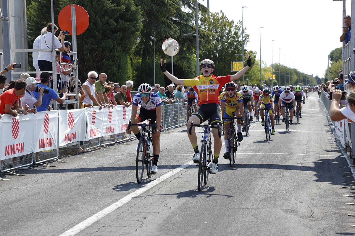In rappresentanza di Emilia Romagna, Marche, Umbria, Toscana, e Veneto ben 26 team che hanno portato i propri ragazzi alla manifestazione in linea che da Massa Lombarda portava i corridori sui primi colli romagnoli con il GPM di Via Bergullo che ha fatto la selezione nelle retrovia e complice di una scivolata in gruppo, il plotone si è spezzato in due tronconi. Durante il rientro a Massa il gruppo si ricompatta e salvo qualche scaramuccia al comando si presenta compatto sul rettilineo conclusivo. Lo sprint conclusivo vede in testa i campioni regionali di Marche ed Emilia-Romagna a giocarsi l’esito e a spuntarla tra Tesei (Alma Juventus Fano) e Ghirelli (S.C. Forlivese) è il romagnolo che giunge a braccia alzate.