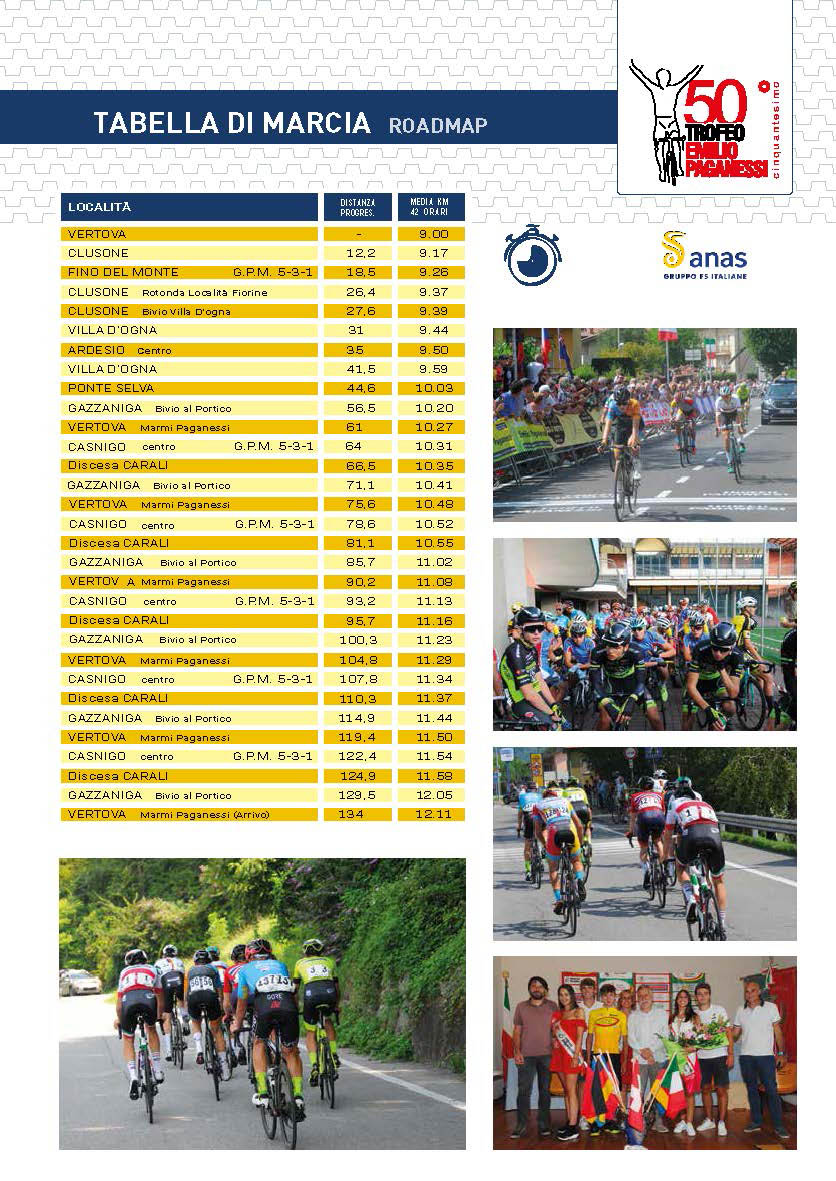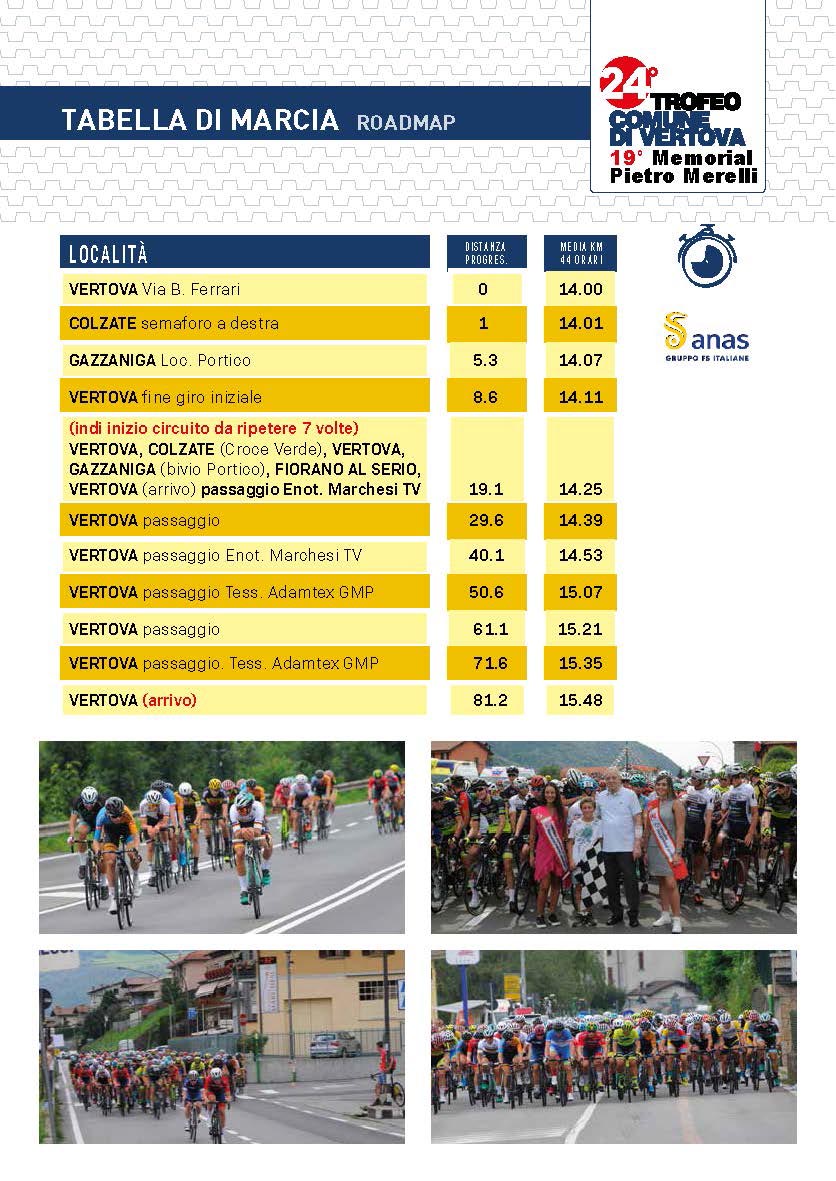 (Vertova-Clusone-Fino Del Monte (GPM)-Clusone-Villa d’Ogna-Ardesio-Villa d’Ogna-Ponte Selva-Gazzaniga-Vertova, inizio circuito n. 5 giri Vertova-Casnico (GPM), discesa Carali-Gazzaniga-Vertova-Marmi Paganessi).
