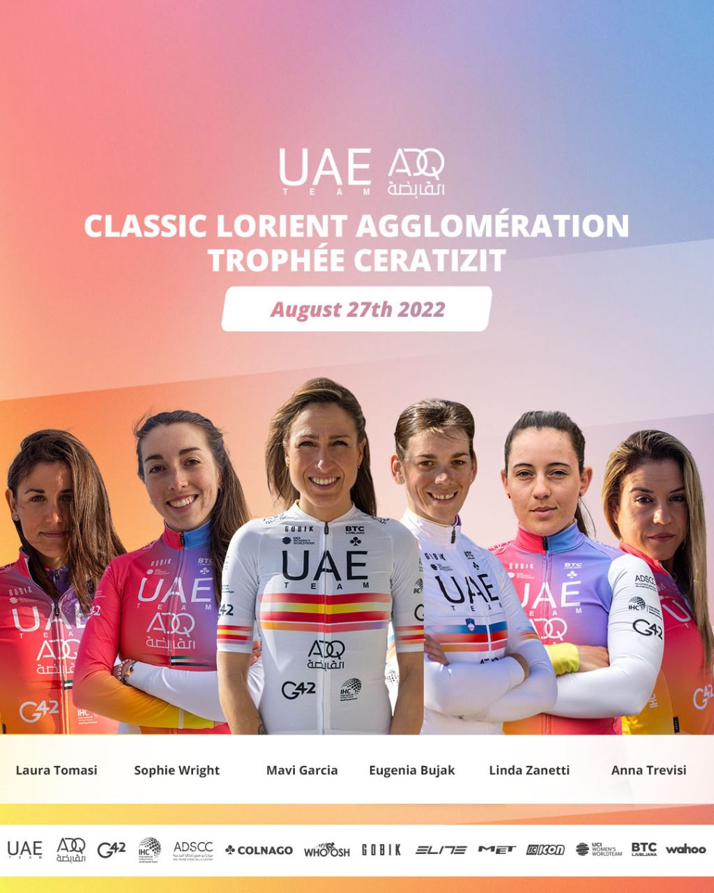 ABU DHABI (EMIRATI ARABI UNITI) – Sabato 27 agosto UAE Team ADQ torna alle competizioni sulle strade della Francia per il 21st Classic Lorient Agglomération – Trophée Ceratizit (1.WWT) in programma a Plouay, appuntamento classico del calendario femminile WorlTour.