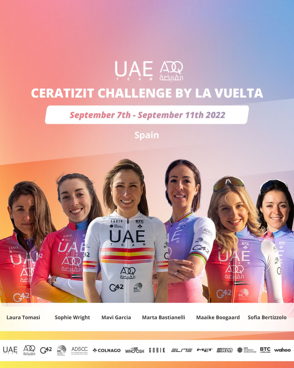 ABU DHABI (EMIRATI ARABI UNITI) – Da mercoledì 7 a domenica 11 settembre UAE Team ADQ prenderà parte alla ottava edizione di Ceratizit Challenge by La Vuelta (2.WWT). Cinque tappe sulle strade della Spagna per un totale di 477,8 km. Si comincia con una cronometro a squadre, poi un percorso molto impegnativo attende le atlete e il finale sarà a Madrid, lo stesso giorno in cui si concluderà anche La Vuelta maschile.