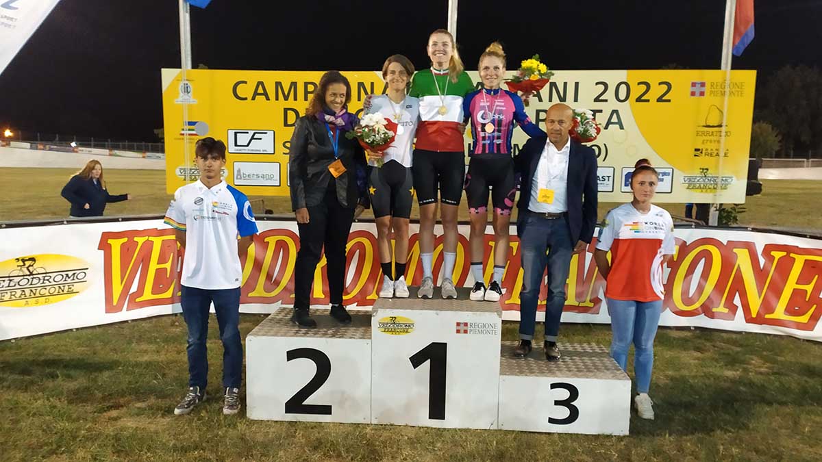 Fra le donne, dicevamo, due medaglie d’oro per Martina Alzini. La campionessa del Cofidis Women Team conquista prima l’Inseguimento individuale davanti a Vittoria Bussi (Open Cycling Team) e Matilde Bertolini (Bepink) e poi la Corsa a punti su Valentina Scandolara (C.S. Esercito) e Matilde Vitillo (Bepink).