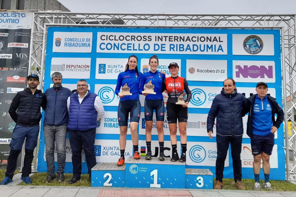 Dopo l’esordio vincente a Cadoneghe e il successo in maglia azzurra al Ciclocross Internacional Xaxancx (Spagna) di sei giorni fa, Valentina Corvi si conferma una delle junior più promettenti a livello europeo conquistando il settimo posto assoluto nel Ciclocross Internacional Concello de Ribadumia, gara di classe C2 in cui la 17enne valtellinese è risultata essere la migliore della sua categoria (nella foto, il podio della prova delle donne junior).