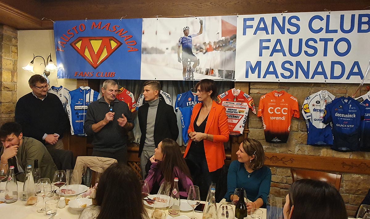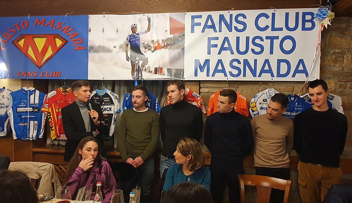 Erano presenti alla serata anche i suoi compagni di team Andrea Bagioli e Davide Ballerini, e poi gli amici professionisti Simone Consonni, Stefano Oldani e Nicola Conci, che hanno scherzato e raccontato aneddoti con Masnada.