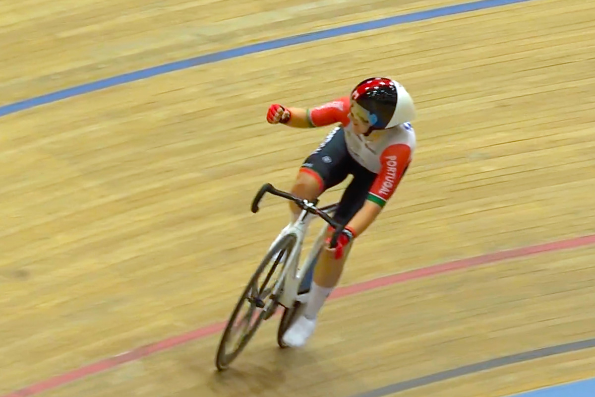 Maria Martins, vincitrice nello scratch agli Europei in pista di Grenchen