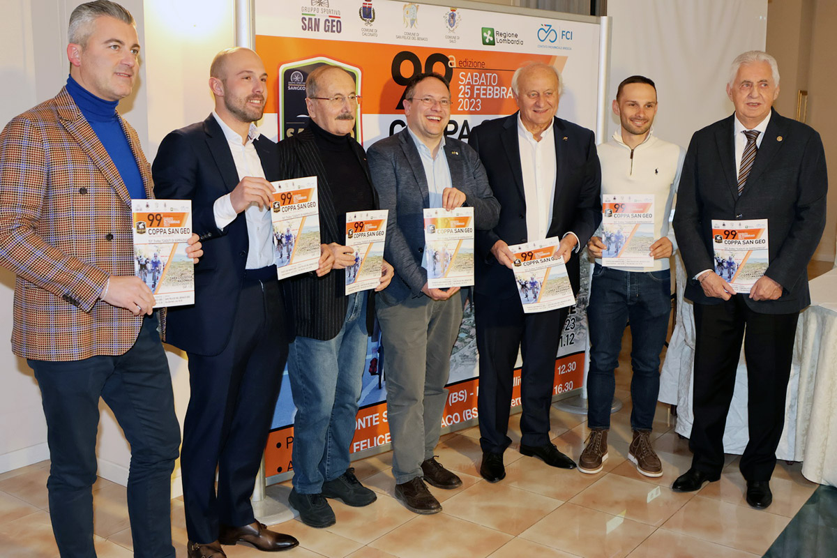 PONTE SAN MARCO (BS) – Mancano undici giorni al via della stagione italiana degli Elite e Under 23, che il 25 febbraio accenderanno i motori per la prima gara del 2023. E molti di questi giovani e promettenti profili saranno al via della 99° Coppa San Geo – 53° Trofeo Caduti Soprazocco-Memorial Attilio Necchini-Giancarlo Otelli, che è stata presentata sabato 11 febbraio presso il salone delle feste dell’Albergo Ristorante Sullivan di Ponte San Marco (Photo Cailotto).